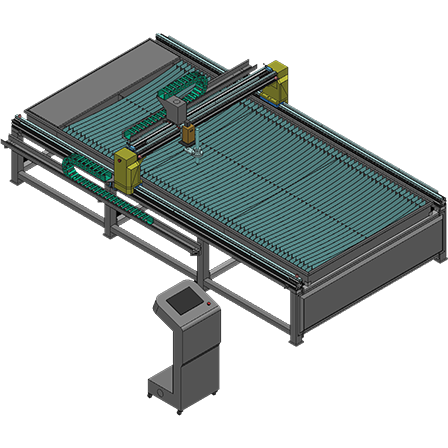 Le pupitre CNC intégré facilite le chargement de fichiers .dxf et .dwg, la programmation de formes paramétriques, l’imbrication automatique et le suivi précis du processus de coupe, tandis que l’entraînement par pignons-crémaillères et moteurs pas à pas garantit un mouvement régulier et une exécution fiable des pièces.